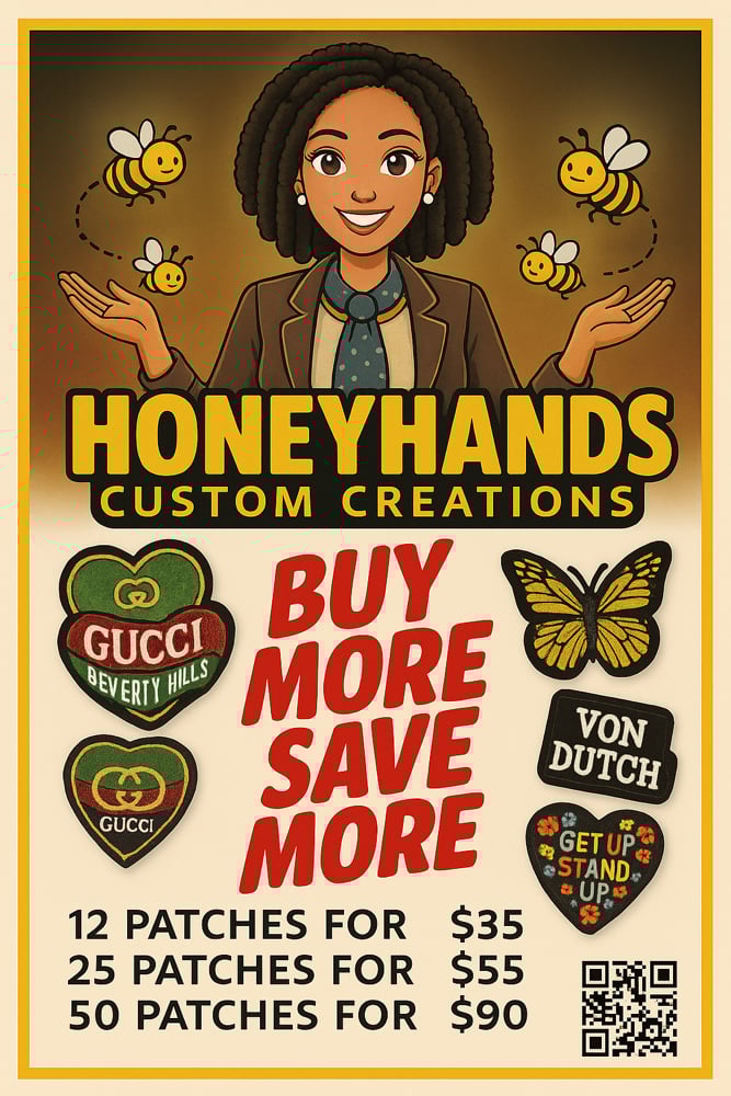 🐝✨ Welcome to Honey Hands Custom Creations! ✨🐝 Unique handmade patches, apparel & gifts made with love. 💛 📦 Fast shipping | 🎨 Custom orders available | 💌 Contact us anytime!